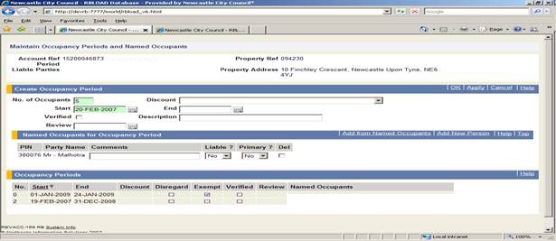 (Using the review process, when the account is updated from information received from the review, the occupant to be disregarded will be confirmed using the same criteria so in some cases the occupant may change, dependant on course durations).